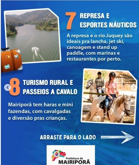Mairiporã, nossa cidade bonita, está a 39 km da capital, 37.1km do Aeroporto de Guarulhos, 48.4km de Congonhas, 106.7km do Porto de Santos com uma população de 97.399 habitantes.Nosso clima serrano, abraçada pela reserva da Biosfera do famoso cinturão verde da cidade São Paulo, com a Serra da Cantareira, “ a maior floresta urbana do mundo “, tendo quatro Parques Estaduais em seu território,com 21 atrativos culturais, 60 atrativos naturais, 11 cachoeiras, 44 trilhas, 54 meios de hospedagens, 149 ambientes gastronômicos variados, 8 empresas de receptivos e 119 espaços para eventos onde a cidade ficou conhecida como a “ Cidade dos Casamentos “, entre outros atrativos, sendo cada um com sua segmentação e diferencial além de 7 igrejas e 1 templo religioso que abençoam no turismo da fé, faz que com toda essa preservação ambiental, beleza natural e sua população acolhedora, transforme o turismo como a principal atividade econômica da cidade, por isso, a titularidade de Município Turístico já alcançada e o tão almejado título de Estância Turística são importantíssimos para geração de emprego, renda e qualidade de vida de Mairiporã.Inserida na Secretaria de Turismo do Estado de São Paulo e oficialmente no Circuito Turístico entre Serras e Águas e chancelada pelo Governo Estadual como Município de Interesse Turístico em 01 de novembro de 2017, Mairiporã conta com o vetor turístico riquíssimo. conhecida como a “capital do ciclismo” com atividades do MTB, Speed, Street e DownHill ), assim sendo a região Norte Metropolitana de São Paulo é contemplada em grande número com atrativos de qualidade. Com uma Secretaria de Turismo, Esportes e Juventude, composta por uma equipe altamente capacitada com 02 turismólogas graduados,01 engenheira, 02 guias de turismo credenciadas CADASTUR, Plano Diretor, Inventário de Oferta Turística, Estudos de Demanda, com um trade turístico atuante, com uma Associação, a ADTUR, com o COMTUR e FUMTUR ativos, com um CPL – Cadeia Produtivo Local – de eventos e do plástico chancelada através de decreto do Governo Estadual e com um total apoio e indicações sempre dadas pelos profissionais da Secretaria de Turismo do Estado de São Paulo e da Assembleia Legislativa, Mairiporã é capaz sim de abraçar grandes causas turísticas em todos os âmbitos qualificados, destinando o município com rota certeira de turistas, dentro do Estado de São Paulo, na grande São Paulo além de se transformar em um importante “Polo Turístico Nacional e Internacional”. Afiliada AMITESP (Associação das Prefeituras dos Municípios de Interesse Turístico do Estado de São Paulo) desde 2017 e AMITUR( Associação dos Municípios de Interesse Turístico ).Hoje, Mairiporã acolhe visitantes do mundo todo diariamente, e alta temporada se estende pelo ano todo devido a vasta segmentação turística desportiva, balneária, gastronômica, contemplativa, de aventura e rural. Uma cidade com infraestrutura turística adequada, com preservação, mais de 80% de áreas de manancial e uma riqueza natural exuberante. Um destino turístico consolidado, determinante de um turismo efetivo gerador de deslocamentos e estradas de fluxo permanente de visitantes com expressivos atrativos.Dispomos de infraestrutura básica para atender as populações fixas e flutuantes no que se refere ao abastecimento de água potável, sistema de coleta e tratamento de esgoto sanitário e gestão de resíduos sólidos. Mairiporã recebe aproximadamente 2 milhões de turistas por ano. 100% do centro da cidade conta com abastecimento de água potável e através do contrato vigente com a Sabesp ao fim do mesmo a meta será totalmente concluída. Vencedor do TOP DESTINOS TURÍSTICOS 2023 na CATEGORIA ESPORTES e com todos esses requisitos essa terra de gigantes, imigrantes trabalhadores e sonhadores, escravos e seu anseio de liberdade, palco de grandes histórias de bandeirantes, o mundo vive aqui, o mundo passa por aqui, com a real percepção dos fatos, acreditamos cegamente que muito mais nos fortalecerá, com qualidade e excelência no acolhimento que estamos aptos e receberemos com muita honra o título de VENCEDOR DO PRÊMIO TOP DESTINOS TURÍSTICOS 2025.