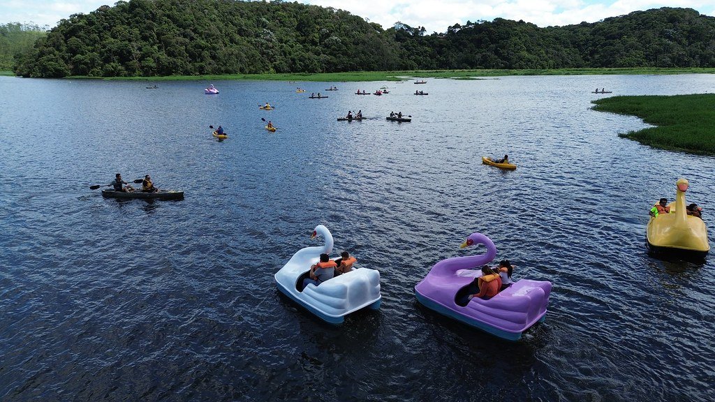 Dentro do maior complexo de lazer da estância, no Parque Oriental, é possível explorar trilhas leves e aproveitar pedalinhos e caiaques na Represa Billings — uma combinação de ecoturismo e recreação familiar.